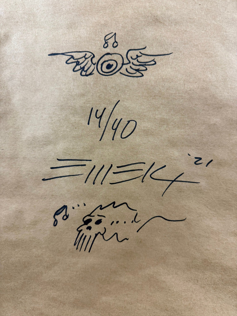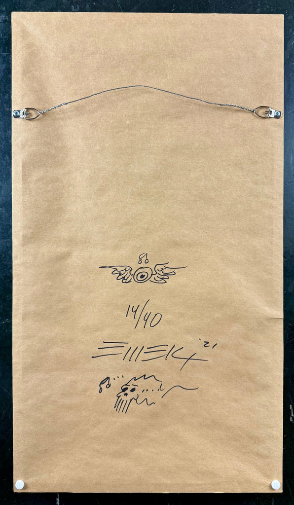 Well, here is an Emek that we have never offered before. This is Emek’s RAWK model poster kit. Emek produced this in 2021. This is the limited black velvet edition of which Emek produced only 40 copies. The poster measures 23” x 13”. Emek has signed & numbered and doodled on the back. It is in mint condition.