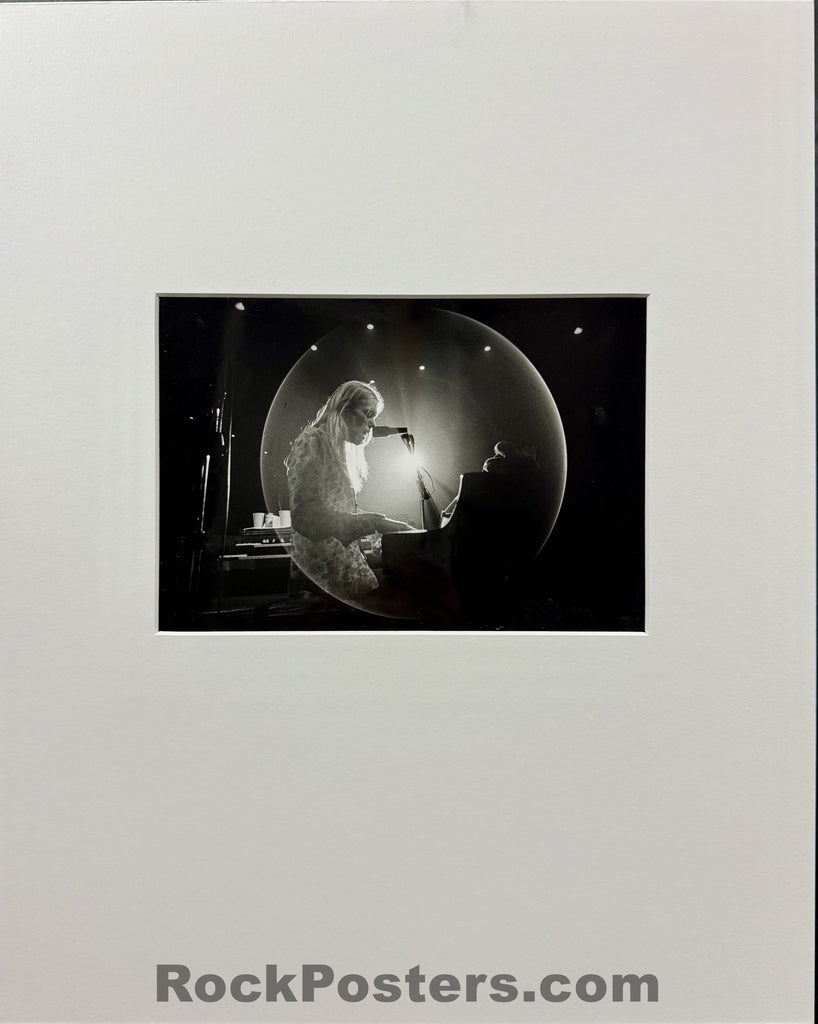 This stunning photograph captures Gregg Allman performing live. Sitting at the keyboards and singing, you can almost hear "Tied to the Whipping Post." The image was taken by the renowned photographer Jim Marshall, who also shot the Live at Fillmore East album cover and had known the band since their early days. The photograph measures 8" x 10" (with matting 16" x 20") and is presented with acid-free matting. Condition: Near Mint.