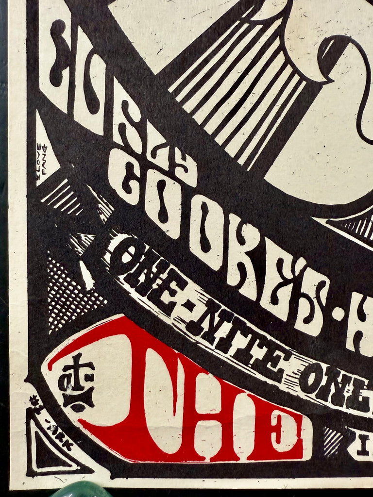 Offered here is the 1st poster in The Ark poster series. This poster was created for the Steve Miller Band at The Ark in beautiful Sausalito, California. The Ark was a houseboat where late night revelers would go after the San Francisco music venues had closed. The poster was designed by Dave Brown. It measures 16 5/8” x 10 3/8”. It is in excellent condition with horizontal bends, handling and a curl from being rolled. This is the only one that has ever passed through our store. We are pretty sure that the print run was minuscule.