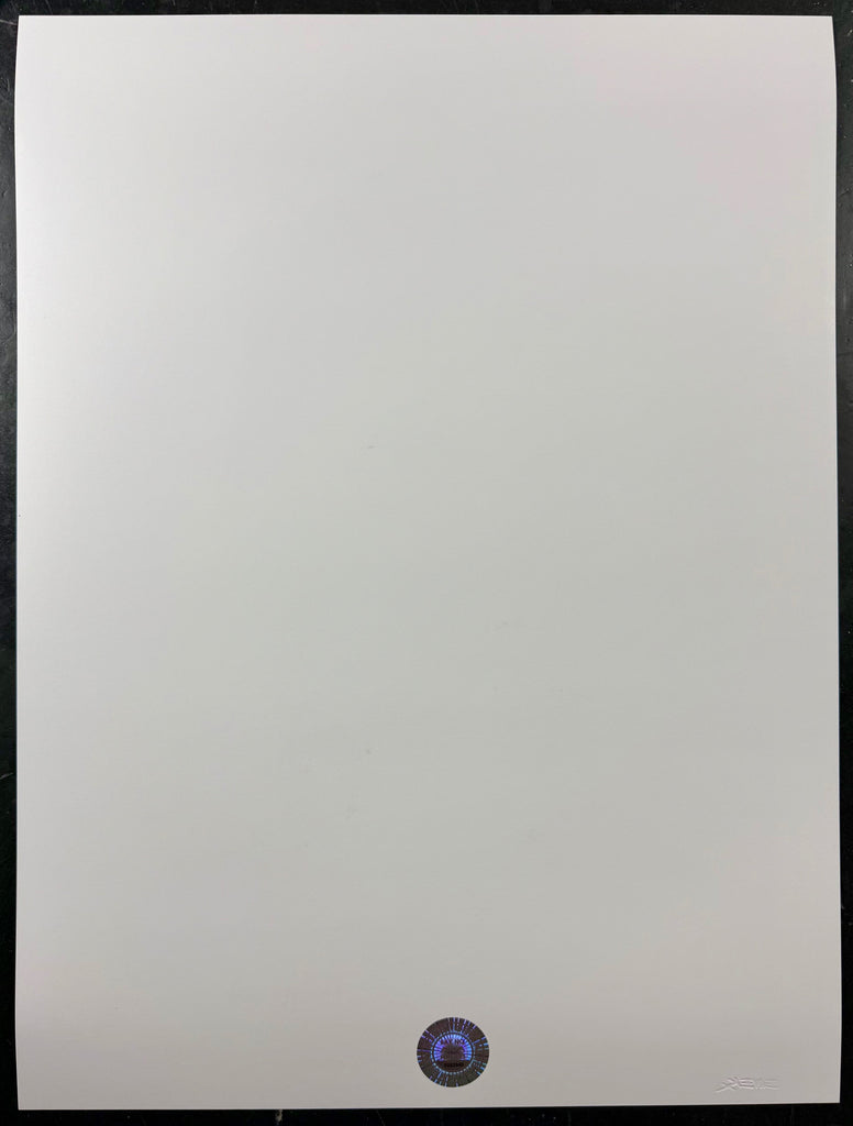 This is the live stream rainbow foil variant. It measures 24” x 18”. Emek produced only 50 copies. The poster has been signed, numbered, and heavily doodled by Emek. The condition is mint. Note that this poster was voted Poster of the Year 2018 by Expresso Beans! Expect some serious interest here.