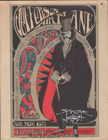 AOR 2.81Edwardian BallJefferson AirplaneStanley Mouse Signed1966 HandbillSan Francisco StateVery Good