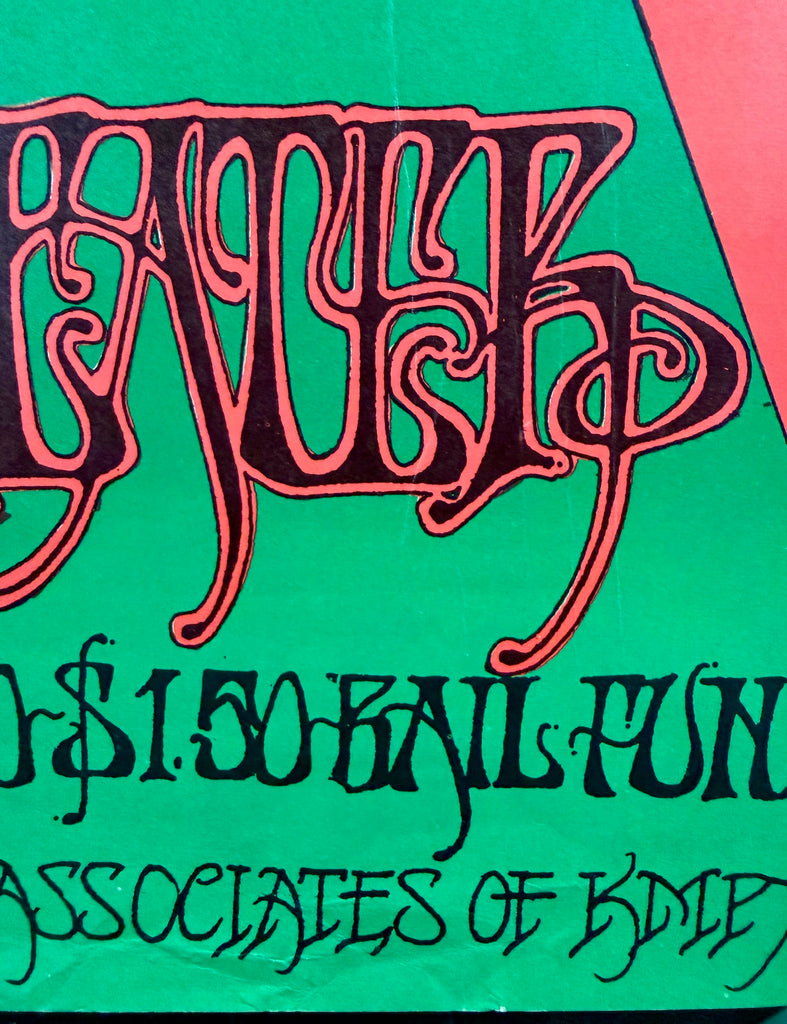Original concert poster from the Straight Theater, located on Haight St. Features amazing artwork by Rick Griffin. This was the 2nd Annual Grope for Peace event. It is pictured in "The Art of Rock" book, page 202, plate 2.230.