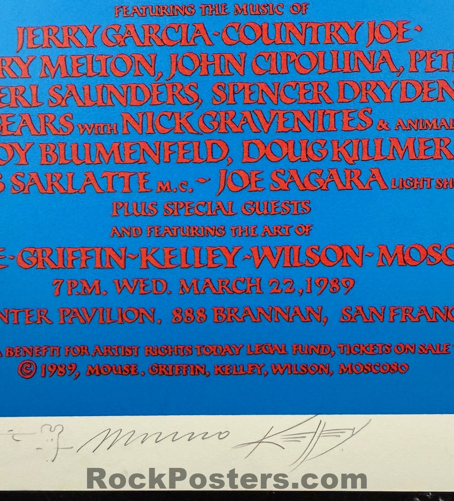 AUCTION - Artist Rights Today - Jerry Garcia - Griffin, Wilson, Kelley - Mouse & Moscoso SIGNED - 1989 Poster - Near Mint