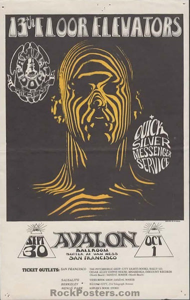 AUCTION - FD-28 - 13 Floor Elevators - 1st Mailer - 1966 Handbill - Avalon Ballroom - Excellent