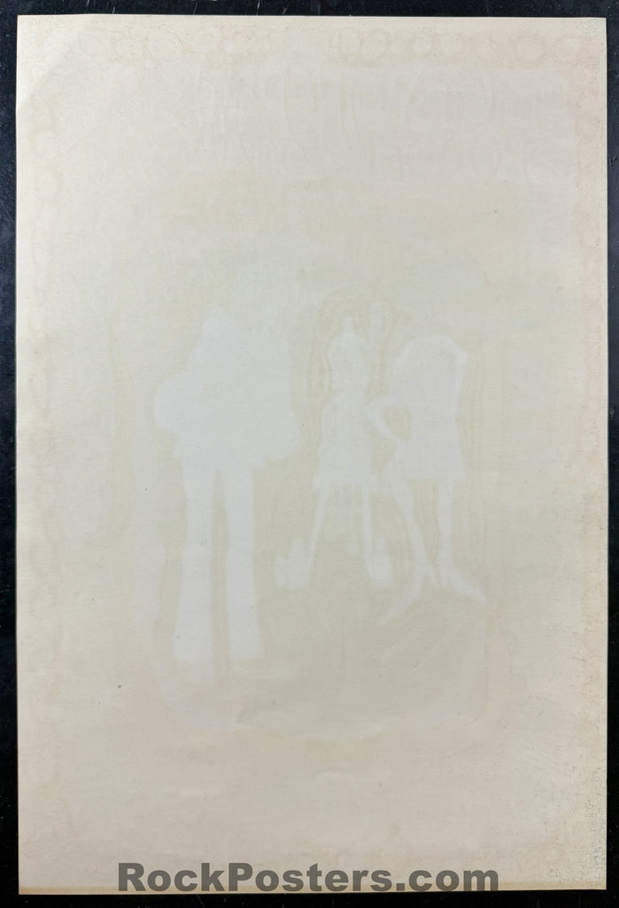 This is a psychedelic and original concert poster for an event held at Family Park in San Jose, California, on October 8, 1967. The lineup included Big Brother and the Holding Company featuring Janis Joplin, Quicksilver Messenger Service, Freedom Highway, Mother Earth, Ace of Cups, Mad River, and the Congress of Wonders. The artwork was created by Mari Tepper and is featured in "The Art of Rock" book on page 232, plate 2.339. The poster measures 14 1/8" x 21" and is in excellent condition, with a corner bend in the upper right, light bends in the lower left and some toning on the back. Overall, it is a very nice piece