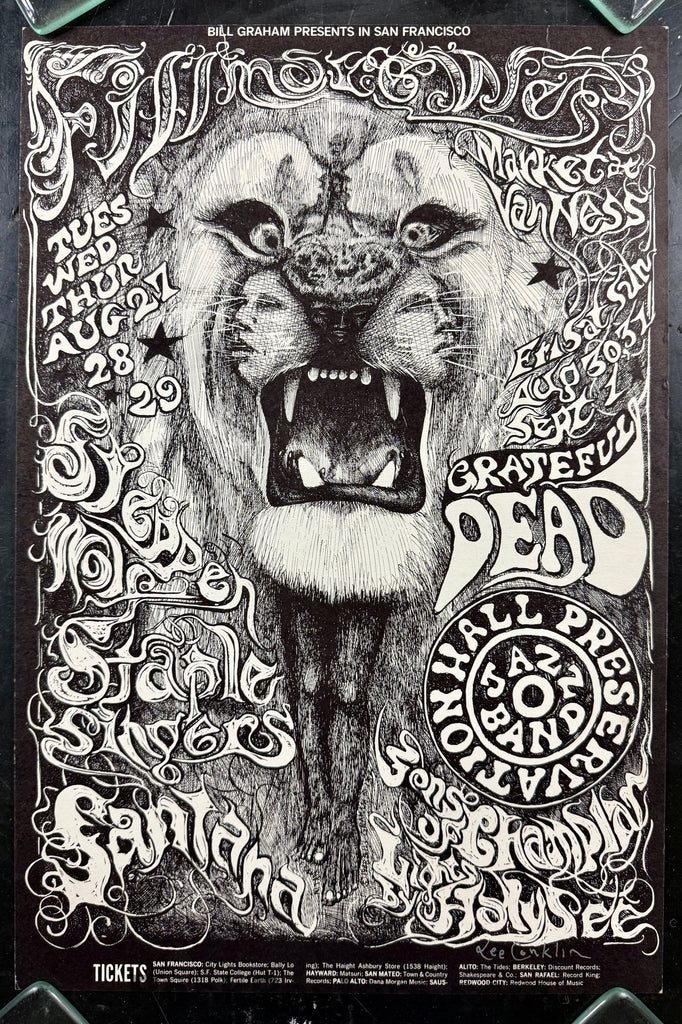AUCTION - BG-134 - Grateful Dead - Santana - Lee Conklin Signed - 1968 Poster - Fillmore West - Excellent