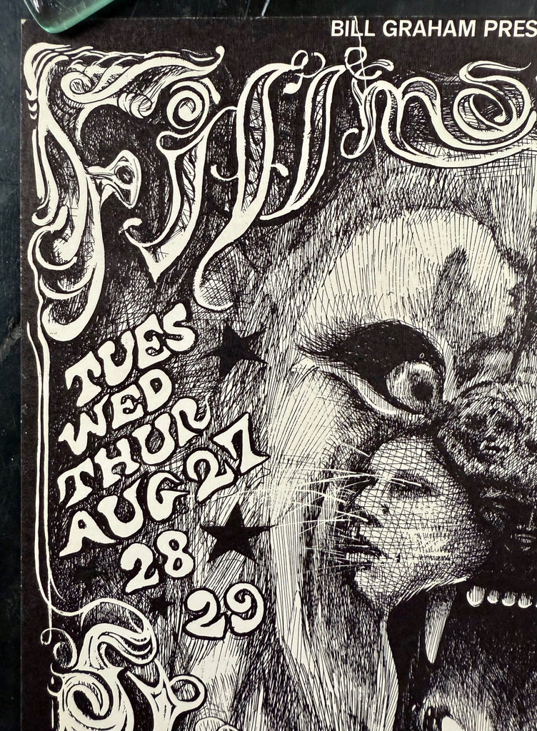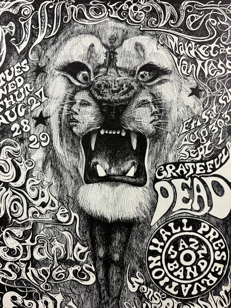 Here it is—one of the coolest and most sought-after posters in the collecting world! This is BG 134, featuring events from August 27 to 31, and September 1, 1968. The poster advertises two separate shows: on the left side, you’ll find Santana, Steppenwolf, and the Staple Singers; on the right side, the Grateful Dead, Sons of Champlin, and The Preservation Hall Jazz Band are featured.