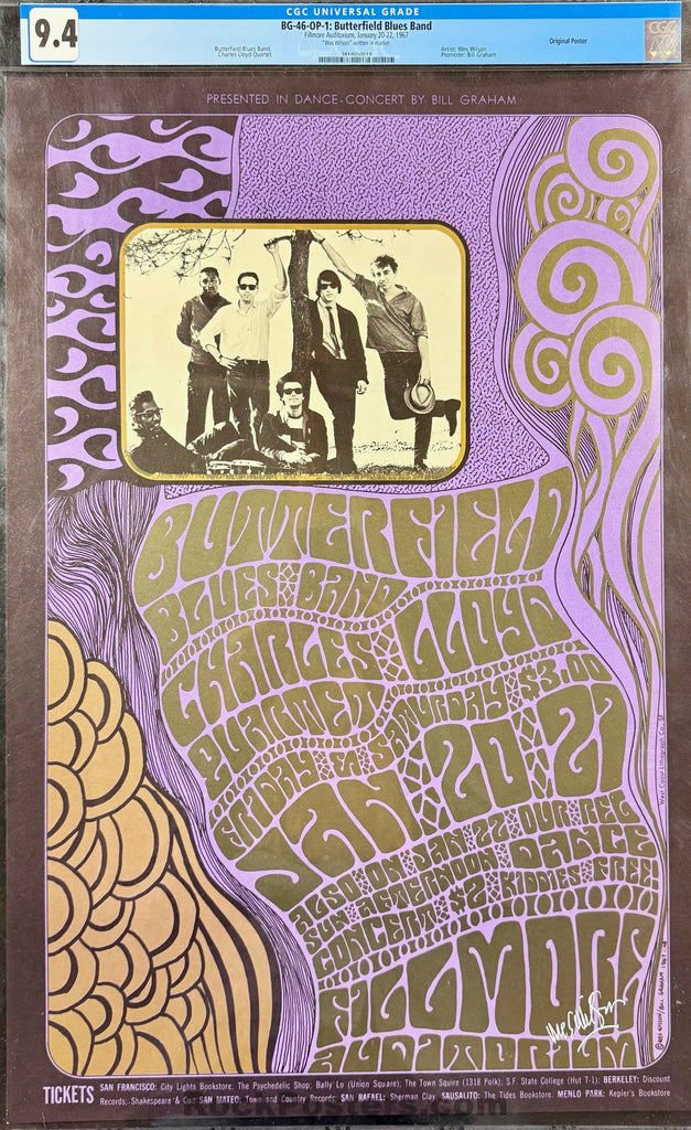 AUCTION - BG-46 - Butterfield Blues Band - Wes Wilson Signed - 1967 Poster - Fillmore Auditorium - CGC Graded 9.4