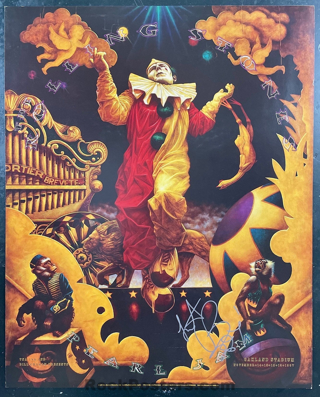 AUCTION - BGP-180 - Rolling Stones - Pearl Jam - Charlie Watts Signed - 1997 Poster - Oakland Stadium - Near Mint Minus