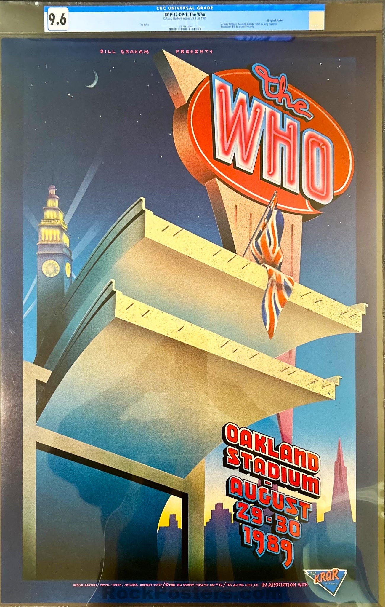 AUCTION - BGP-32 - The Who - Day on the Green 1 & 2 - Oakland Coliseum - 1989 Poster - CGC Graded 9.6