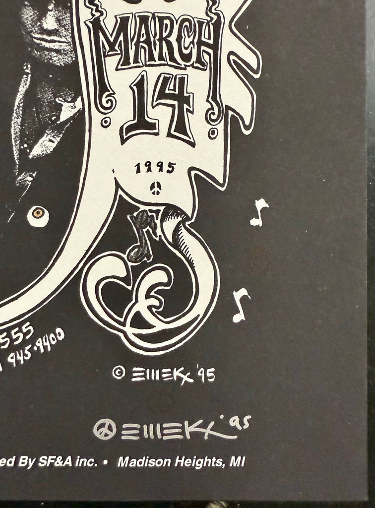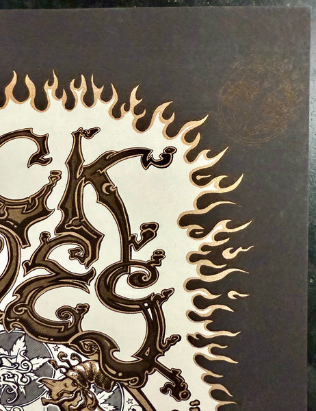 This is an early silkscreen poster by Emek, created for two incredibly talented bands: the Black Crowes and Oasis. The shows took place in 2001 at the Greek Theatre in Los Angeles. This 1st edition. The poster measures 20” x 28” and is signed by Emek.  Its condition is mint.