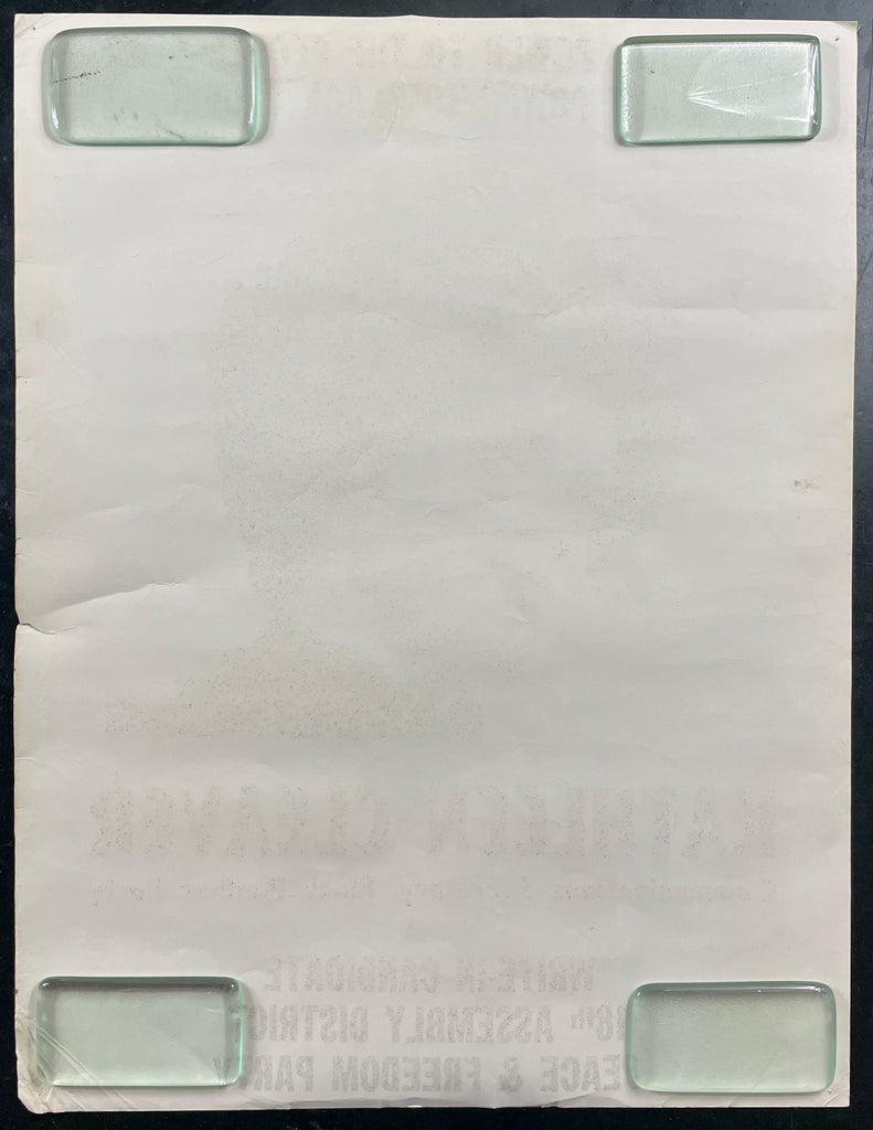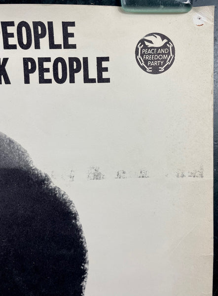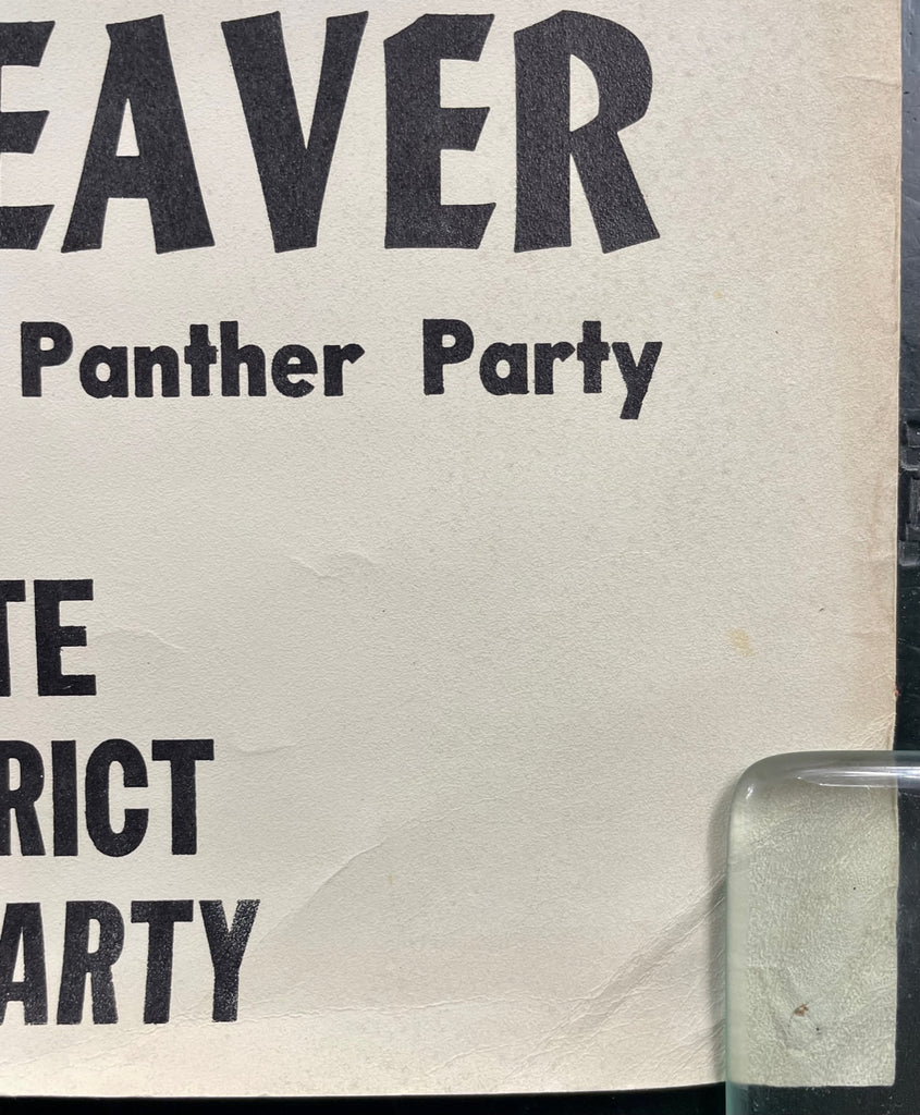 This is a rare, original poster featuring Kathleen Cleaver of the Black Panther Party. She was married to Eldridge Cleaver, one of the founders of the Panthers, and served as their communications secretary. The poster is from her campaign for a State Assembly office and includes the Black Panther logo in the top left corner.