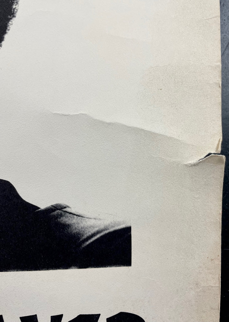 The poster is in very good condition, measures 17 1/2" x 22 13/15" and comes rolled. It shows signs of handling, including tack holes in each corner and a 1/2" tear on the right side, but remains an absolute classic and is very rare.