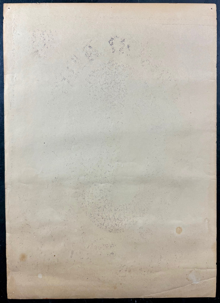 It measures approximately 14 3/16" x 18 7/8". It's in excellent condition with pinholes, handling bends and edge wear. The background color looks almost blue from toning. The poster looks fantastic and would frame beautifully.