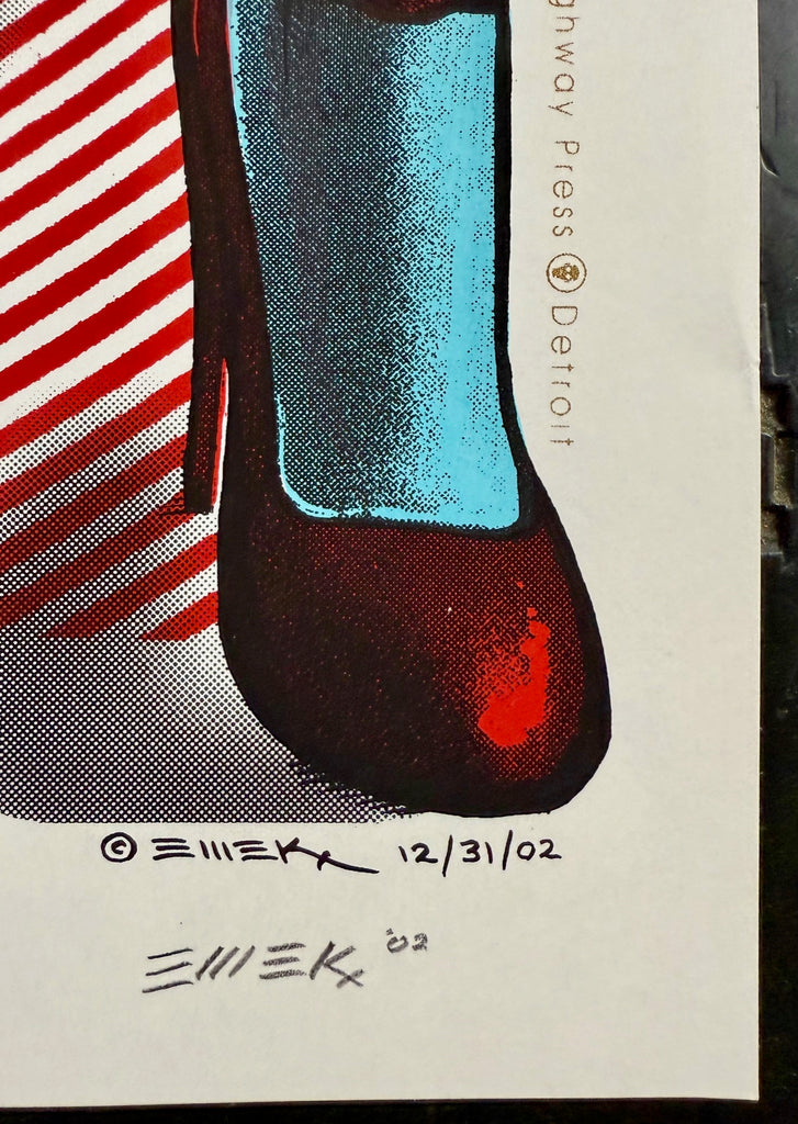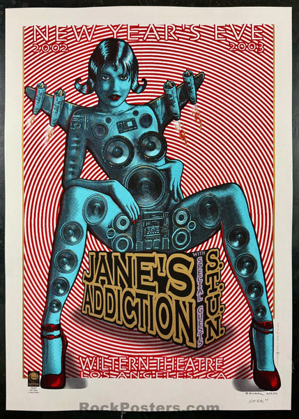 Here is a very cool early silkscreen poster by Emek for Jane's Addiction at The Wiltern in Los Angeles, 2002. The poster measures 20" x 29" and has been signed by Emek. Its condition is near mint.