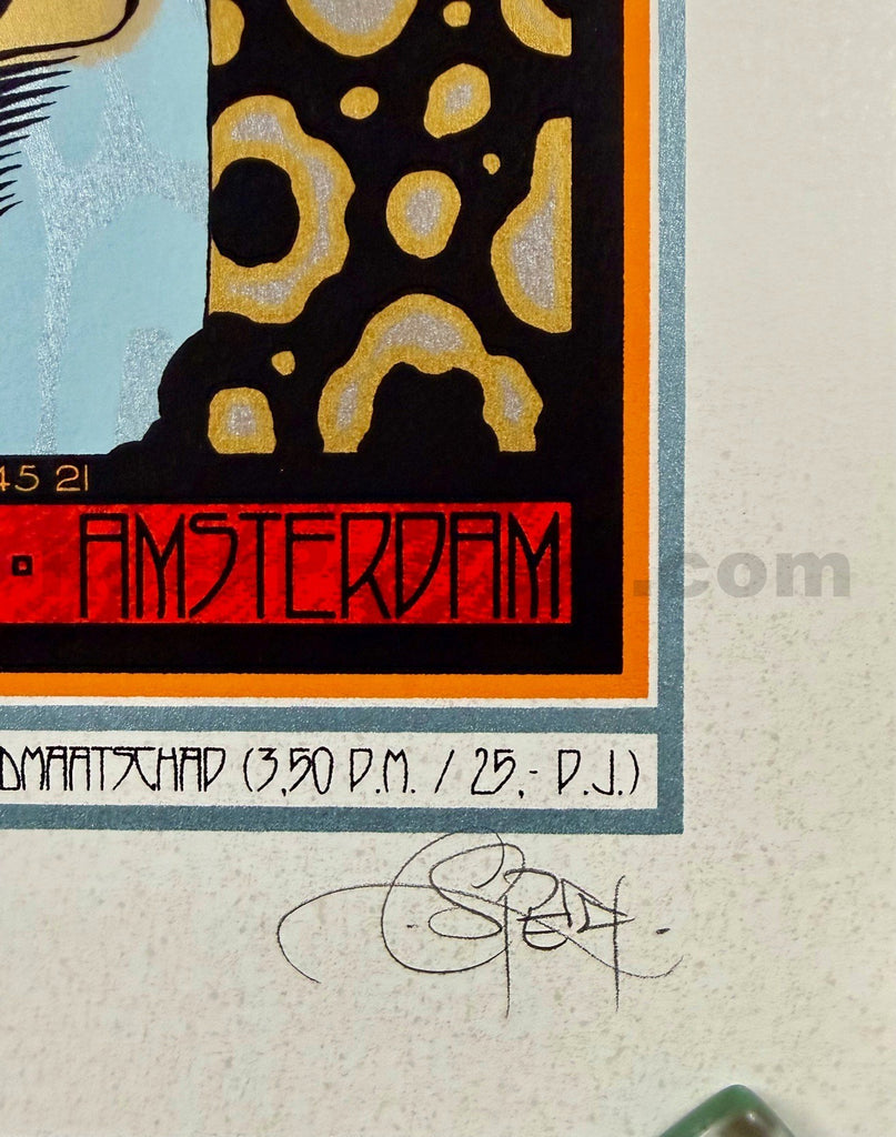 This is a poster by Chuck Sperry for Band of Horses, created for their concert at the Paradiso in Amsterdam on February 23, 2011. This is the Speckled Egg edition, limited to 19 copies. The stunning silkscreen measures 20” x 32” and has been signed and numbered by Chuck. The poster is in mint condition.