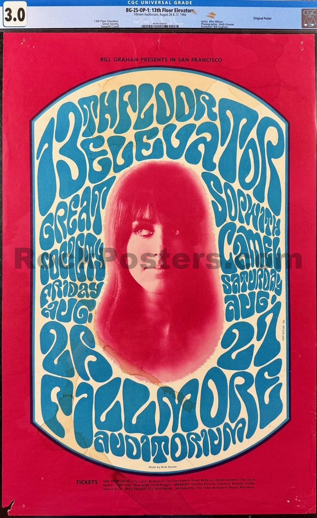 BG-25 - 13th Floor Elevators - Wes Wilson - 1966 Poster - Fillmore Auditorium - CGC Graded 3.0