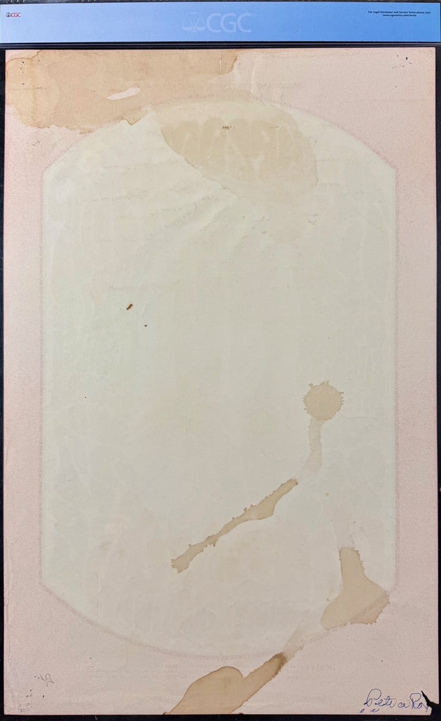The original poster was printed on thin (.0070″ or less) stock and measures approximately 13¾″ x 21⅛″. This is one of the more difficult posters to determine which printing you might have.