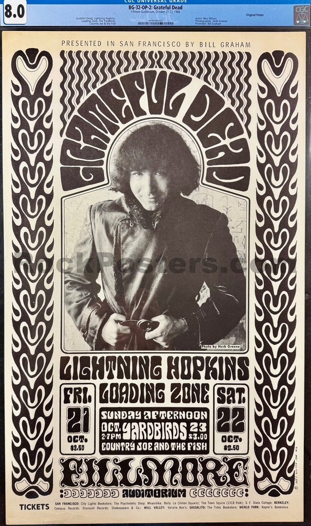 BG-32 - Grateful Dead - Wes Wilson - 1966 Poster - Fillmore Auditorium - CGC Graded 8.0
