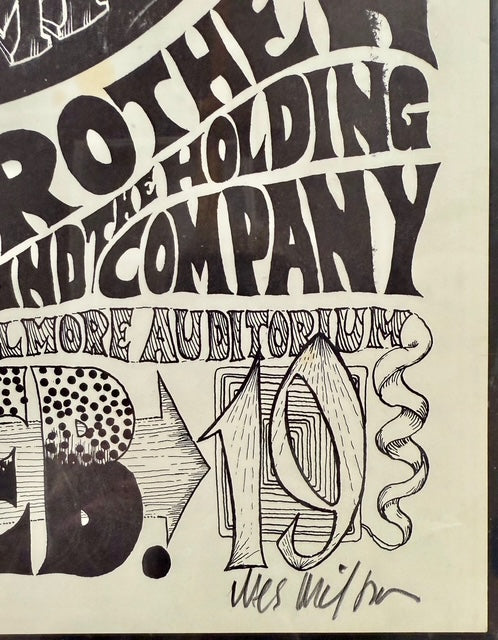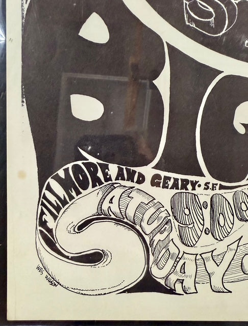 FD-1 is considered a key psychedelic concert poster that collectors desire but only a fortunate few have been able to obtain. The estimated print run is around 250 copies, and most of these were discarded after the concert. The poster was designed by the renowned artist Wes Wilson, who signed it in the lower right margin. It is CGC Graded 6.5 and measures 13 ¾ inches by 19 ¾ inches.
