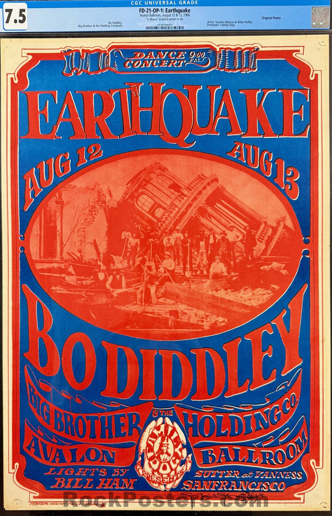 FD-21 - Bo Diddley - Big Brother Janis Joplin - Mouse Signed - 1966 Poster - Avalon Ballroom - CGC Graded 7.5