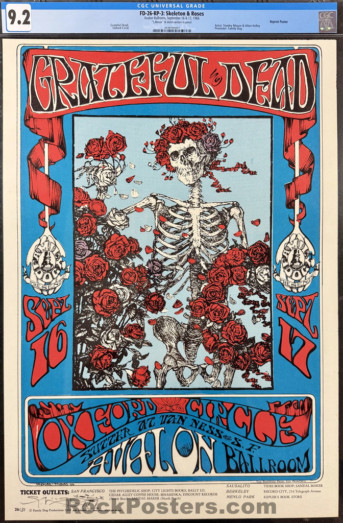 FD-26-RP-3 - Grateful Dead - Mouse Signed - 1966 Poster - Avalon Ballroom - CGC Graded 9.2