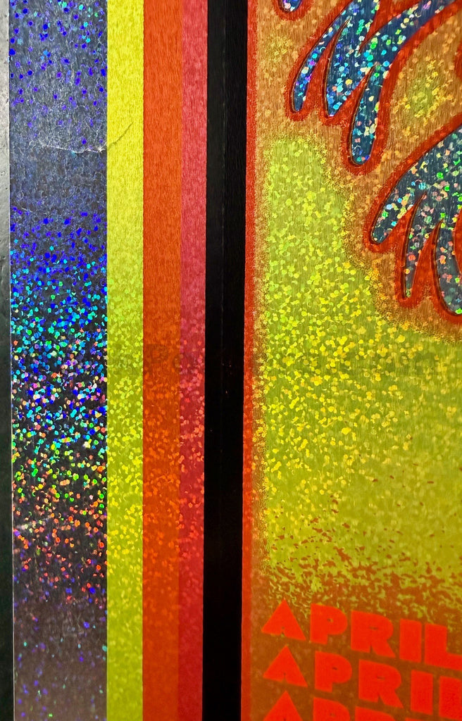This poster represents a distinctive departure from Chuck Sperry's typical stylized depictions of the female form. It is a 5-color silkscreen printed on sparkle foil and was created for Widespread Panic’s 25th Anniversary Tour. This particular version is the Sparkle Foil edition, part of a limited print run of only 20 copies. The silkscreen measures 22” x 33” and has been both signed and numbered by Chuck Sperry. The condition is near mint minus, with minor handling wear and a small break in the foil (see pictures).