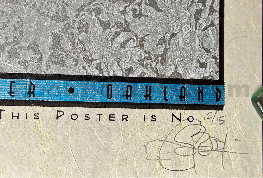 Here is Chuck Sperry's silkscreen poster for Widespread Panic's 2014 performance at the Fox Theater in Oakland, California. This marks the first time Chuck used a landscape or horizontal format for a Panic lady. This is the Natural Fiber edition, limited to only 15 prints. It features an 8-color silkscreen design and is printed on archival cream stock. The poster measures 22” x 34” and is signed by Chuck. It is in mint condition.